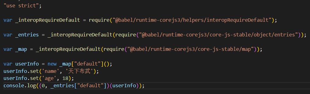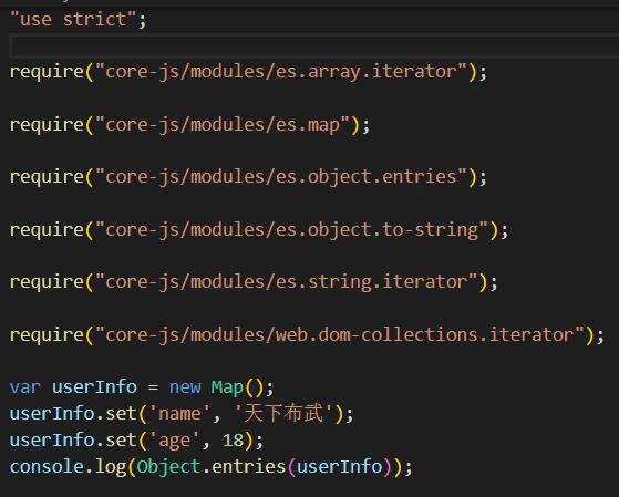 可以看出它在全局作用域下添加了 Map 变量,同时在 Object 原型中添加了 entries 方法。